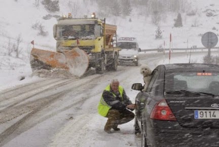 - A veces pueden ser recomendables sprays que aplicados sobre la banda de rodadura mejoran un tiempo breve la adherencia (no sustituyen a las cadenas que si son obligatorias).